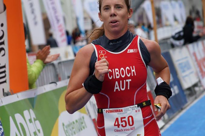 (Bild: Irina Weiss beim Gewinn der Silbermedaile im Rahmen der Powerman Duathlon Europameisterschaften)